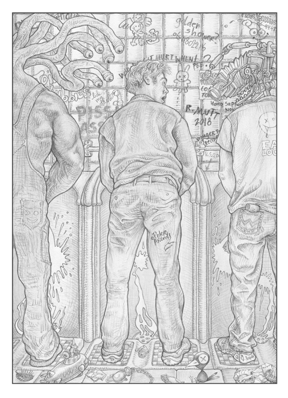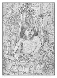 Om de toevloed aan beelden enigszins te hanteren heb ik besloten het alfabet te gebruiken als ordenend principe. Bij elke letter heb ik een fobie gezocht die mijn fantasie prikkelde tot het maken van steeds gedetailleerder tekeningen.